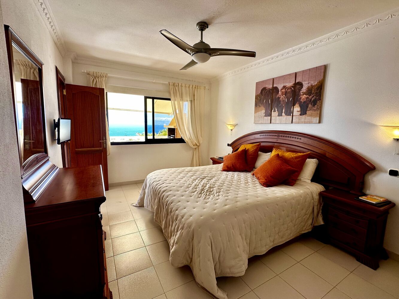 Il comprend une cuisine neuve entièrement équipée avec îlot central et bar, un spacieux séjour avec deux portes-fenêtres donnant sur l'océan, une suite parentale avec salle de bains neuve donnant également sur la terrasse, une deuxième chambre avec vue sur l'océan, une chambre simple avec rangements et une deuxième salle de bains neuve.